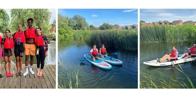Paddle along the river until you reach “Woodford Lock”. At the lock you will need to get out using the pontoon on the right-hand side and cross over to the other side of the lock to get back in and continue your journey (never take your SUP or Kayak into a lock). Continue along the river and eventually you will arrive at The Watermill. On arrival, the river splits and you must follow to the left to exit the water using the portage point.